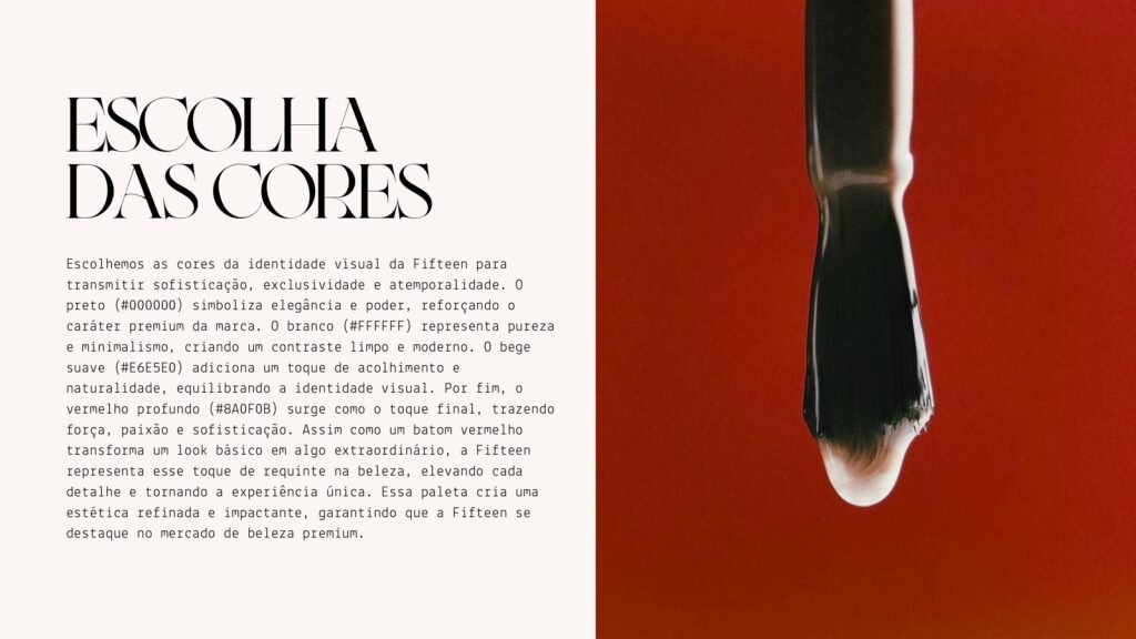 Sofisticação que se vê, se sente e se deseja. A Fifteen já era uma marca consolidada no universo da beleza, mas queria evoluir sua imagem para refletir mais luxo, profissionalismo e modernidade.