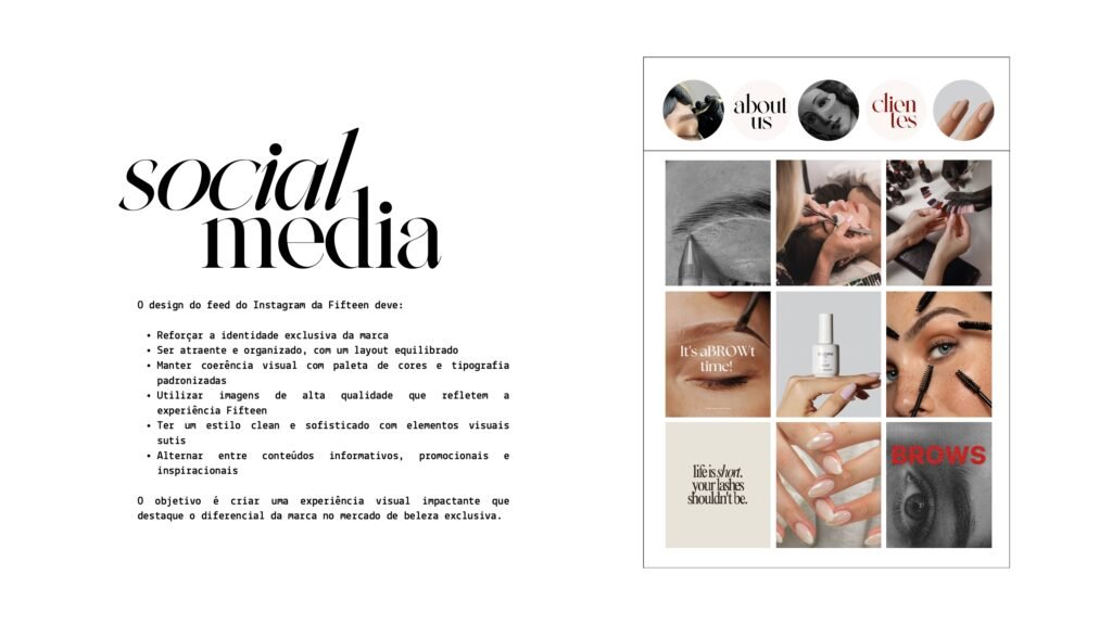 A Fifteen já era uma marca consolidada no universo da beleza, mas queria evoluir sua imagem para refletir mais luxo, profissionalismo e modernidade.
